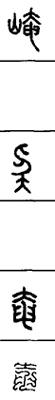 从上到下依次是小篆、甲骨文、金文、古玺及战国文字、缪篆及汉代文字、鸟虫篆。