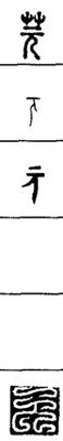 从上到下依次是小篆、甲骨文、金文、古玺及战国文字、缪篆及汉代文字、鸟虫篆。
