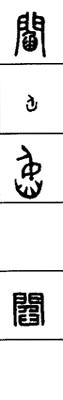 从上到下依次是小篆、甲骨文、金文、古玺及战国文字、缪篆及汉代文字、鸟虫篆。
