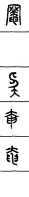 从上到下依次是小篆、甲骨文、金文、古玺及战国文字、缪篆及汉代文字、鸟虫篆。