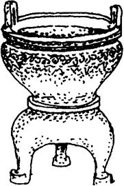 古代蒸煮饭用的炊具,下部是鬲(lì),中间有箅(bì)子。