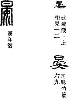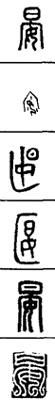 从上到下依次是小篆、甲骨文、金文、古玺及战国文字、缪篆及汉代文字、鸟虫篆。