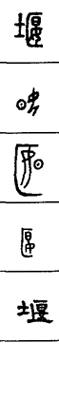 从上到下依次是小篆、甲骨文、金文、古玺及战国文字、缪篆及汉代文字、鸟虫篆。