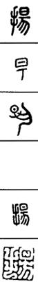 是偏旁昜的简化形式。异体颺,形符从風,是义项①的本字。今并作扬。