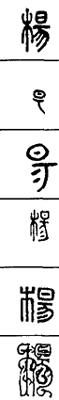 从上到下依次是小篆、甲骨文、金文、古玺及战国文字、缪篆及汉代文字、鸟虫篆。