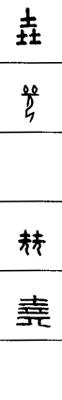 从上到下依次是小篆、甲骨文、金文、古玺及战国文字、缪篆及汉代文字、鸟虫篆。