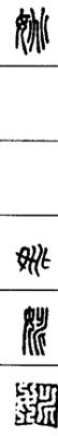 从上到下依次是小篆、甲骨文、金文、古玺及战国文字、缪篆及汉代文字、鸟虫篆。