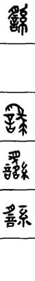 从上到下依次是小篆、甲骨文、金文、古玺及战国文字、缪篆及汉代文字、鸟虫篆。