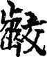 ”,未確,《漢語大字典》未有其字。根據字下所注音切“五交反”,當即“齩”字。《說文》:“齩,齧骨也。從齒,交聲。”段玉裁注:“俗以鳥鳴之咬爲爲齩齧。”《集韻·巧韻》:“齩,《說文》:‘齧骨也。’亦作咬。”按:顏元孫《干祿字書》:“齩