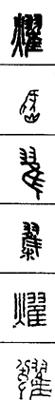 〈辨〉耀字篆书作耀,形符从火;后写作耀,从光,从火与从光意义相通。声符翟,读zhái,现在已不能正确表示音读了◇注意:躍简化作跃,但耀不能援例简化作