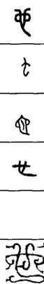 从上到下依次是小篆、甲骨文、金文、古玺及战国文字、缪篆及汉代文字、鸟虫篆。