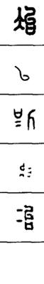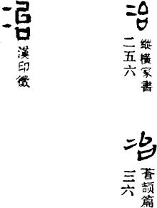 从上到下依次是小篆、甲骨文、金文、古玺及战国文字、缪篆及汉代文字、鸟虫篆。