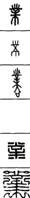 从上到下依次是小篆、甲骨文、金文、古玺及战国文字、缪篆及汉代文字、鸟虫篆。