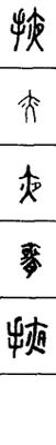 从上到下依次是小篆、甲骨文、金文、古玺及战国文字、缪篆及汉代文字、鸟虫篆。