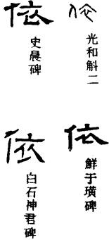 甲骨文的依字,从人从衣,象人在衣中之形,表示穿衣的意思。所以,依的本义为著(zhuó)衣,引申为倚靠、凭藉之义,又有附从、按照的意思。