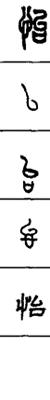 从上到下依次是小篆、甲骨文、金文、古玺及战国文字、缪篆及汉代文字、鸟虫篆。