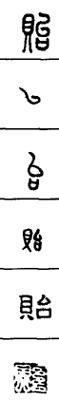 从上到下依次是小篆、甲骨文、金文、古玺及战国文字、缪篆及汉代文字、鸟虫篆。