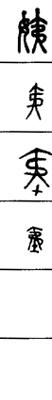 从上到下依次是小篆、甲骨文、金文、古玺及战国文字、缪篆及汉代文字、鸟虫篆。