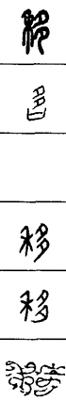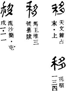 yí 《广韵》:迁也,遗也,延也,徙也,易也。 弋支切止开三平支以