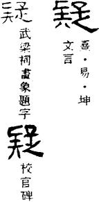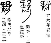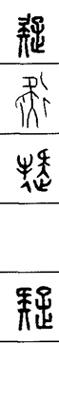 从上到下依次是小篆、甲骨文、金文、古玺及战国文字、缪篆及汉代文字、鸟虫篆。