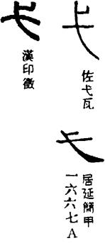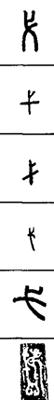 从上到下依次是小篆、甲骨文、金文、古玺及战国文字、缪篆及汉代文字、鸟虫篆。