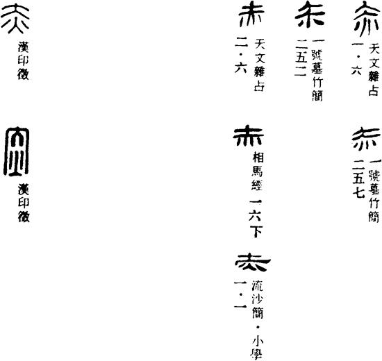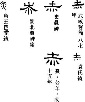 【说明】“赤”为会意字,由“大”、“火”组合而成,大火的颜色正是红的。参附录三。
