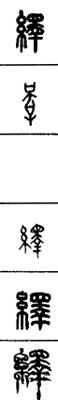 从上到下依次是小篆、甲骨文、金文、古玺及战国文字、缪篆及汉代文字、鸟虫篆。