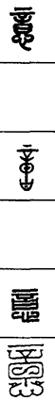 从上到下依次是小篆、甲骨文、金文、古玺及战国文字、缪篆及汉代文字、鸟虫篆。