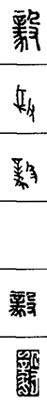 从上到下依次是小篆、甲骨文、金文、古玺及战国文字、缪篆及汉代文字、鸟虫篆。