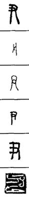 从上到下依次是小篆、甲骨文、金文、古玺及战国文字、缪篆及汉代文字、鸟虫篆。
