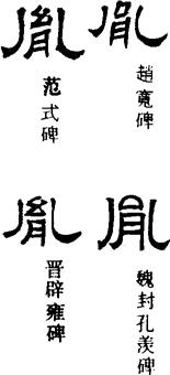 从上到下依次是小篆、甲骨文、金文、古玺及战国文字、缪篆及汉代文字、鸟虫篆。
