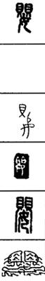 从上到下依次是小篆、甲骨文、金文、古玺及战国文字、缪篆及汉代文字、鸟虫篆。