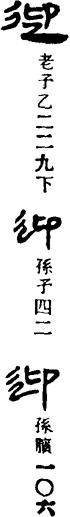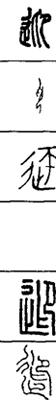 从上到下依次是小篆、甲骨文、金文、古玺及战国文字、缪篆及汉代文字、鸟虫篆。