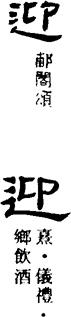 (一)yíng 《广韵》:逢也。 语京切 梗开三平庚疑 又《广韵》:迓也。 鱼敬切 梗开三去映疑
