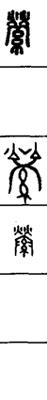 从上到下依次是小篆、甲骨文、金文、古玺及战国文字、缪篆及汉代文字、鸟虫篆。
