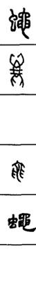 从上到下依次是小篆、甲骨文、金文、古玺及战国文字、缪篆及汉代文字、鸟虫篆。