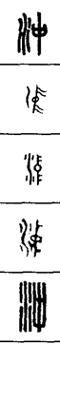 从上到下依次是小篆、甲骨文、金文、古玺及战国文字、缪篆及汉代文字、鸟虫篆。