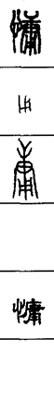 从上到下依次是小篆、甲骨文、金文、古玺及战国文字、缪篆及汉代文字、鸟虫篆。