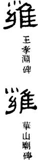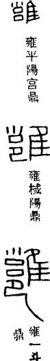 ①和,和谐。《诗经·召南·何彼襛矣》:“曷不肃雝,王姬之车。”(肃:敬。)[雝雝]1.鸟和鸣声。《诗经·邶风·匏有苦叶》:“雝雝鸣雁。”2.和悦的样子。《诗经·大雅·思齐》:“雝雝在宫,肃肃在庙。”(肃肃:恭敬的样子。)②通“壅”。堵塞。《淮南子·时则》:“遏沟渎,止流水,雝溪谷。”(遏è:拦阻。)