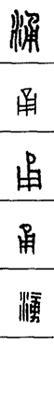 从上到下依次是小篆、甲骨文、金文、古玺及战国文字、缪篆及汉代文字、鸟虫篆。