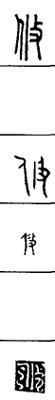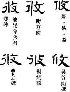 从上到下依次是小篆、甲骨文、金文、古玺及战国文字、缪篆及汉代文字、鸟虫篆。