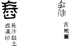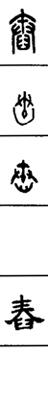从上到下依次是小篆、甲骨文、金文、古玺及战国文字、缪篆及汉代文字、鸟虫篆。