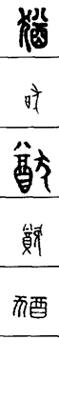 从上到下依次是小篆、甲骨文、金文、古玺及战国文字、缪篆及汉代文字、鸟虫篆。