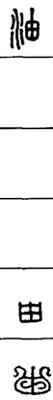 从上到下依次是小篆、甲骨文、金文、古玺及战国文字、缪篆及汉代文字、鸟虫篆。