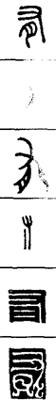 从上到下依次是小篆、甲骨文、金文、古玺及战国文字、缪篆及汉代文字、鸟虫篆。