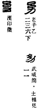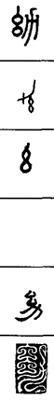 从上到下依次是小篆、甲骨文、金文、古玺及战国文字、缪篆及汉代文字、鸟虫篆。