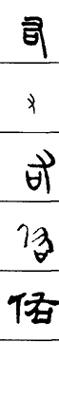 从上到下依次是小篆、甲骨文、金文、古玺及战国文字、缪篆及汉代文字、鸟虫篆。