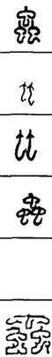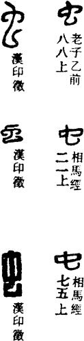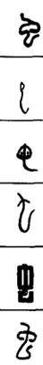 从上到下依次是小篆、甲骨文、金文、古玺及战国文字、缪篆及汉代文字、鸟虫篆。