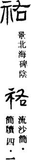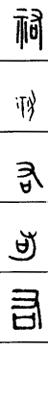 从上到下依次是小篆、甲骨文、金文、古玺及战国文字、缪篆及汉代文字、鸟虫篆。
