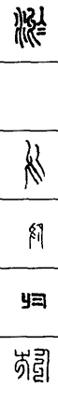 从上到下依次是小篆、甲骨文、金文、古玺及战国文字、缪篆及汉代文字、鸟虫篆。